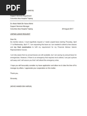 Contoh Surat Cuti Kerja Tanpa Ganji Sebab Kecemasan Sakit Atau Alasan Peribadi Career Resources